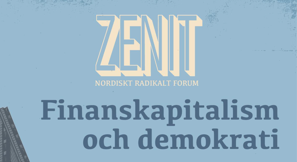 Samtalet leds av Mikael Omstedt, forskare på finanskapitalismens politiska ekonomi och historiska geografi samt aktiv i tidskriften Röda rummets redaktion. Dörrarna öppnar kl 19 och samtalet börjar 19:30. Som alltid på Zenit finns de arrangerande tidskrifterna till försäljning — liksom snacks och dryck.